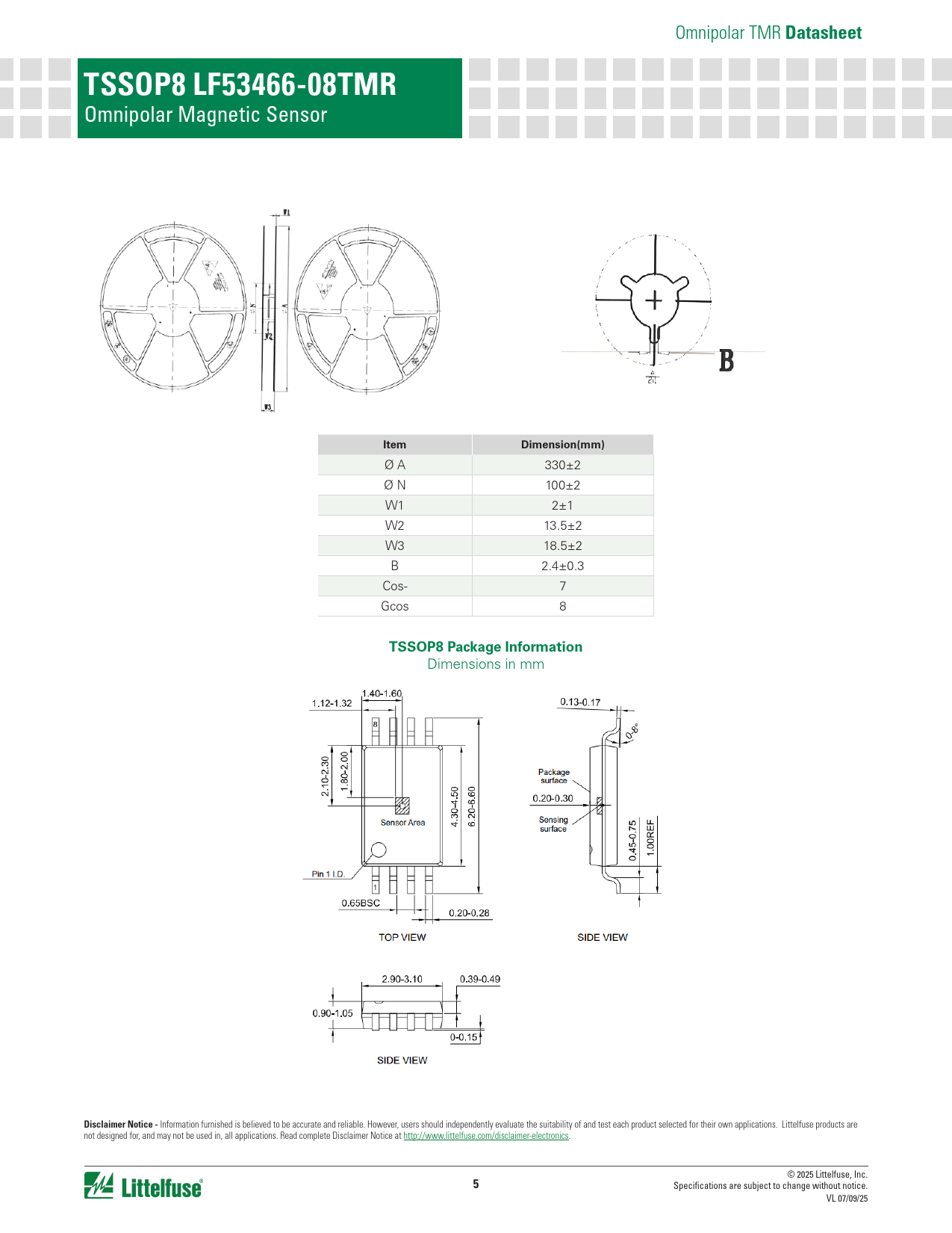 Datasheet. TSSOP8 LF53466-08TMR. Item. Dimension(mm). TSSOP8 Package Information. Disclaimer Notice -