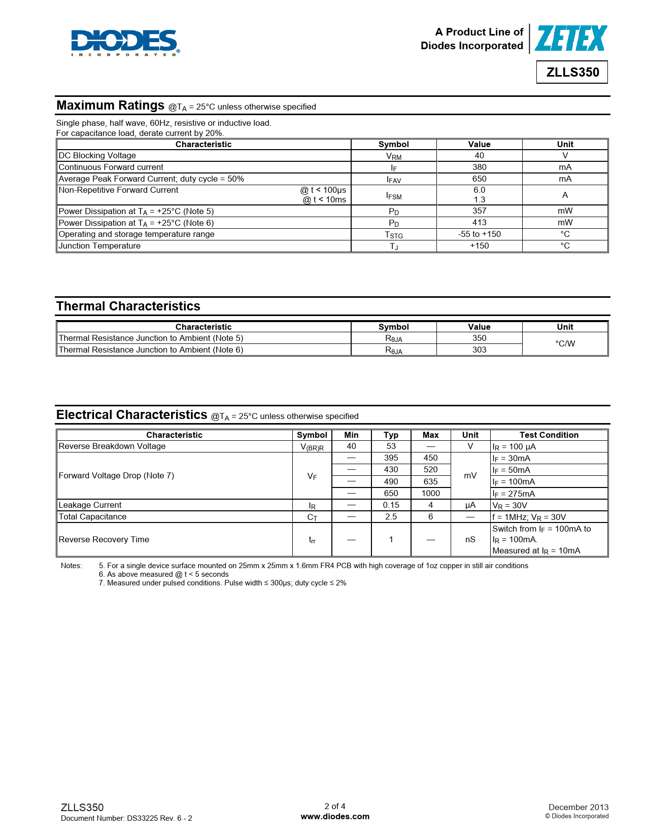 A Product Line of. Diodes Incorporated. ZLLS350. Maximum Ratings. Characteristic Symbol. Value. Unit. Thermal Characteristics
