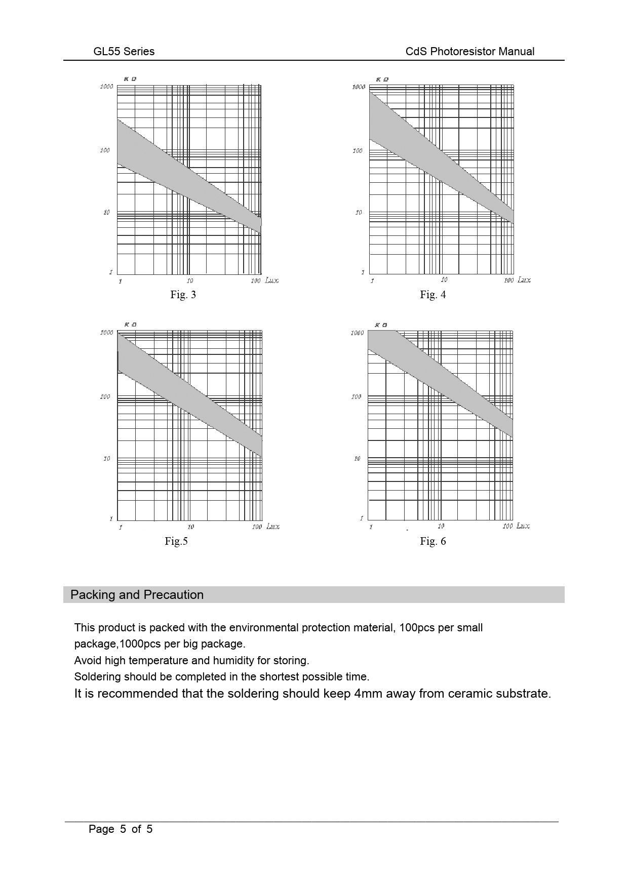 GL55 Series CdS Photoresistor Manual Fig 3 Fig 4 Fig.5 Fig 6 Packing and Precaution This product is packed with the environmental protection