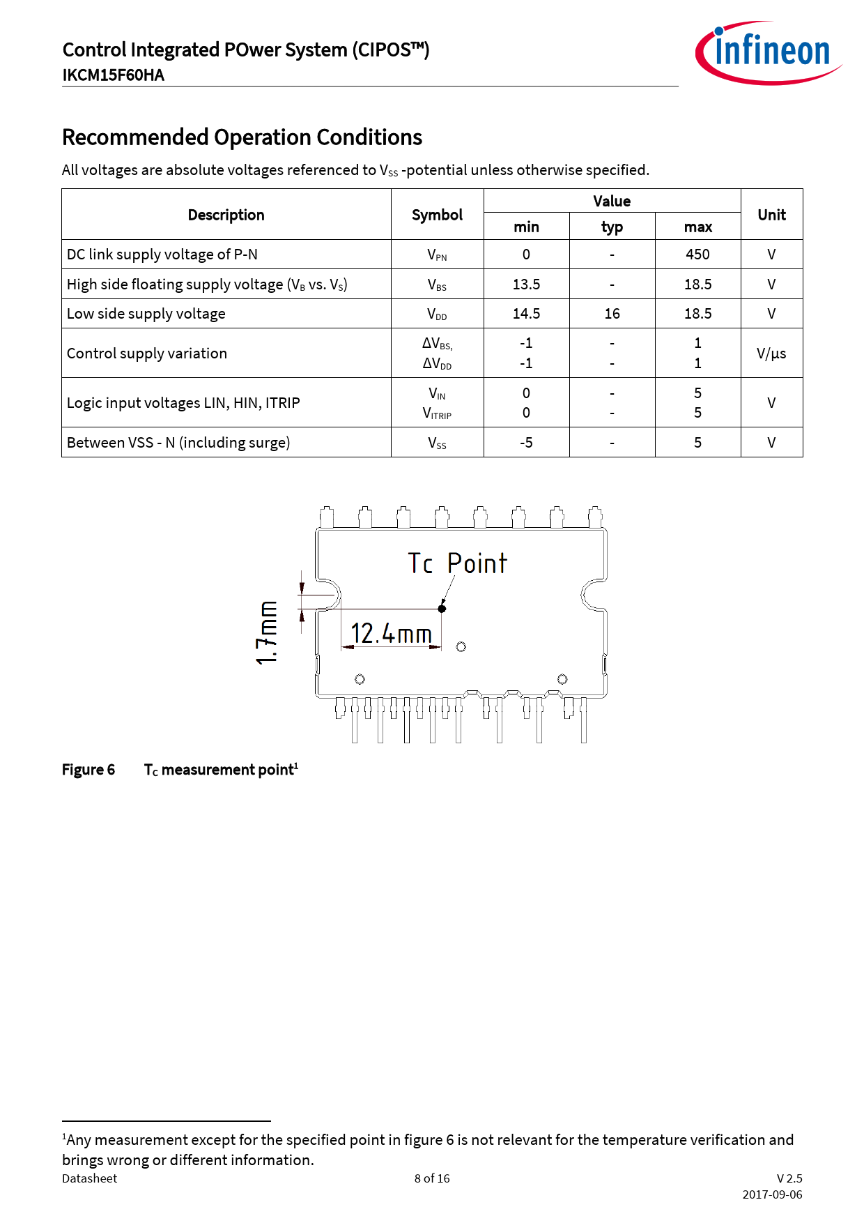 Control Integrated POwer System (CIPOS™) IKCM15F60HA Recommended Operation Conditions All voltages are absolute voltages referenced to