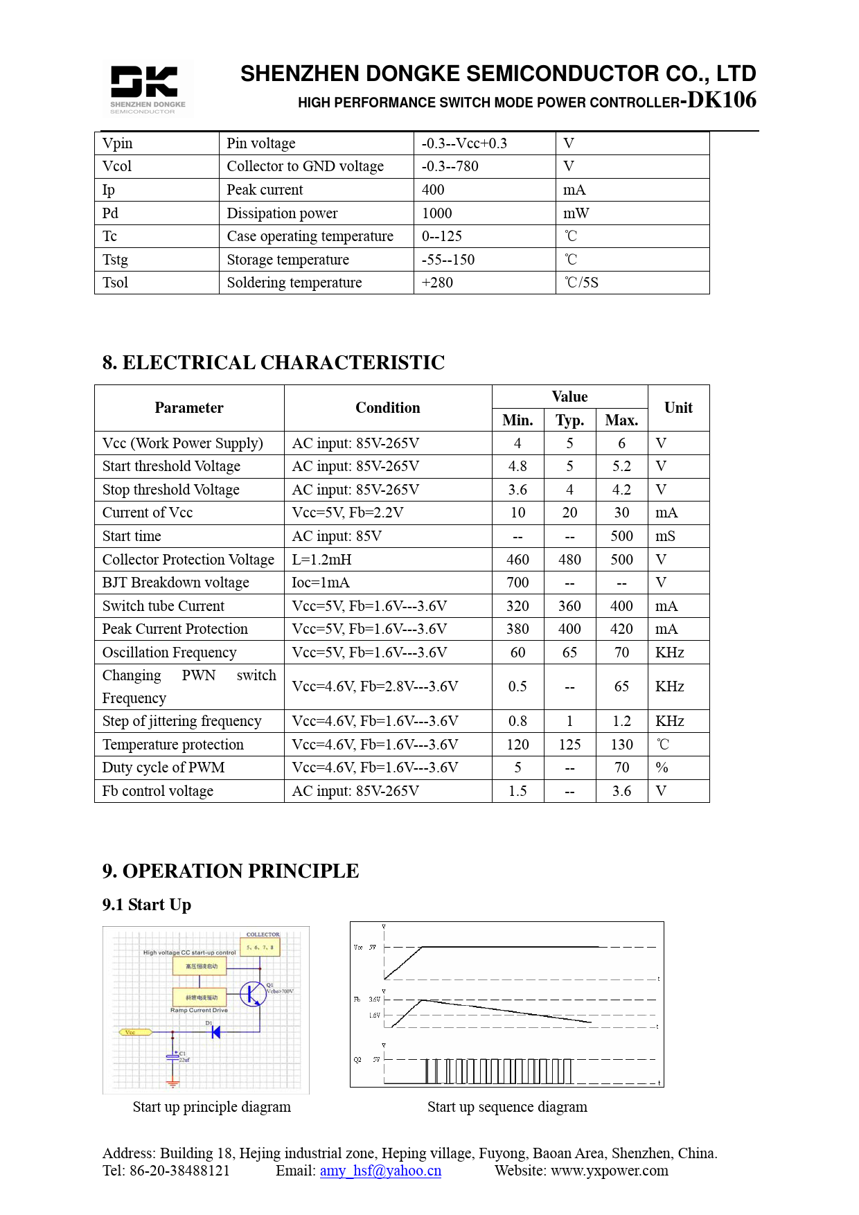 SHENZHEN DONGKE SEMICONDUCTOR CO., LTD HIGH PERFORMANCE SWITCH MODE POWER CONTROLLER-DK106 8 ELECTRICAL CHARACTERISTIC