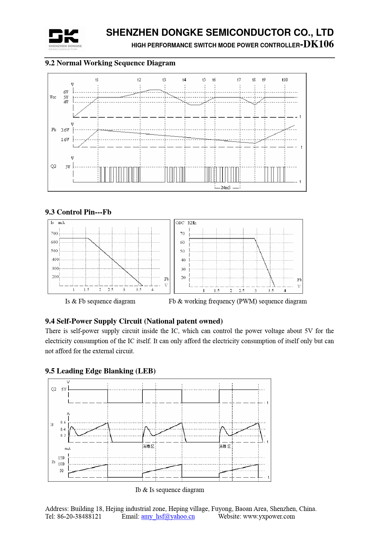 SHENZHEN DONGKE SEMICONDUCTOR CO., LTD HIGH PERFORMANCE SWITCH MODE POWER CONTROLLER-DK106 9.2 Normal Working Sequence Diagram 9.3 Control Pin---Fb