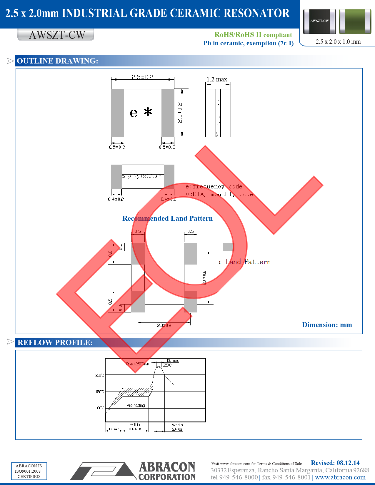 ABRACON IS ISO9001:2008 30332 Esperanza, Rancho Santa Margarita, California 92688 CERTIFIED R tel 949-546-8000 | fax 949-546-8001 | www.abracon.com