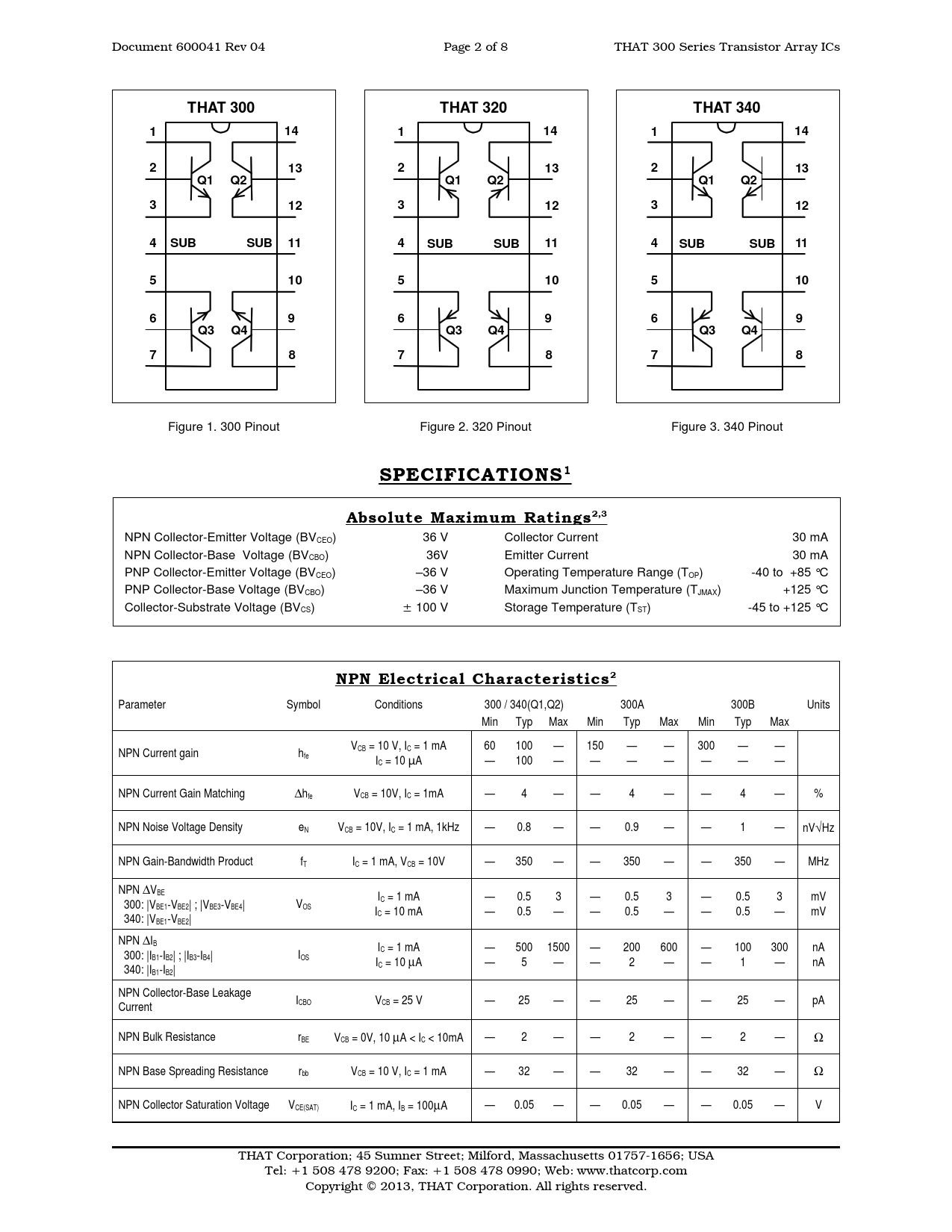 Document 600041 Rev 04 Page 2 of 8 THAT 300 Series Transistor Array ICs