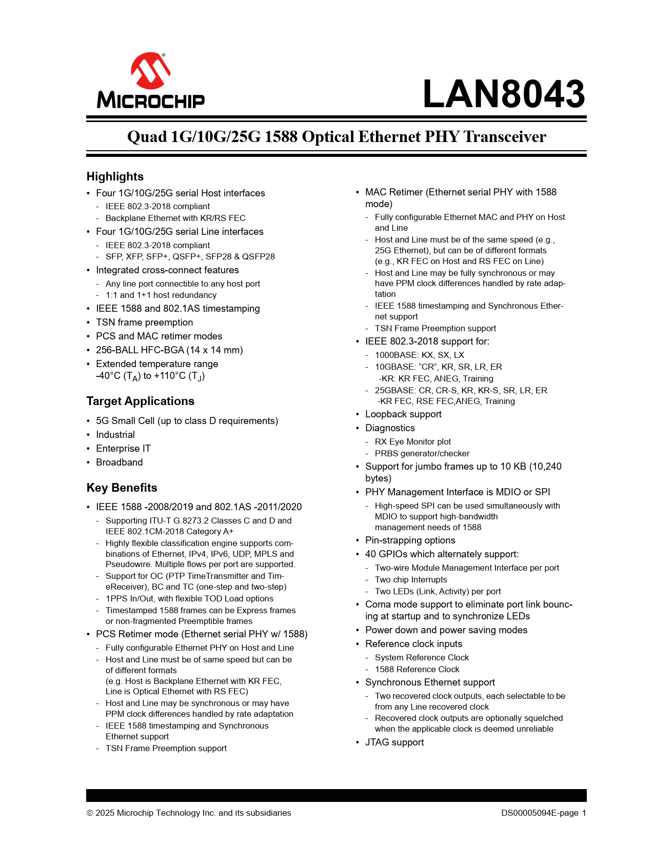 Datasheet LAN8043 (Microchip)