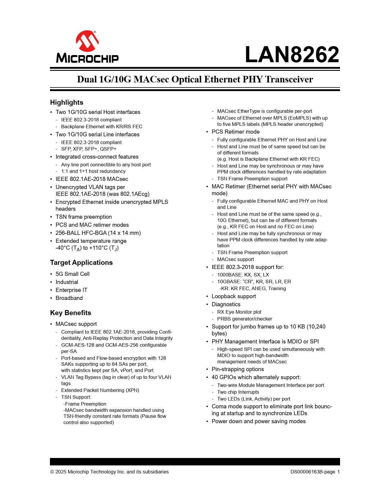 Dual-Port 1G/10G MACsec Optical Ethernet PHY Transceiver in 256-ball HFC-BGA package