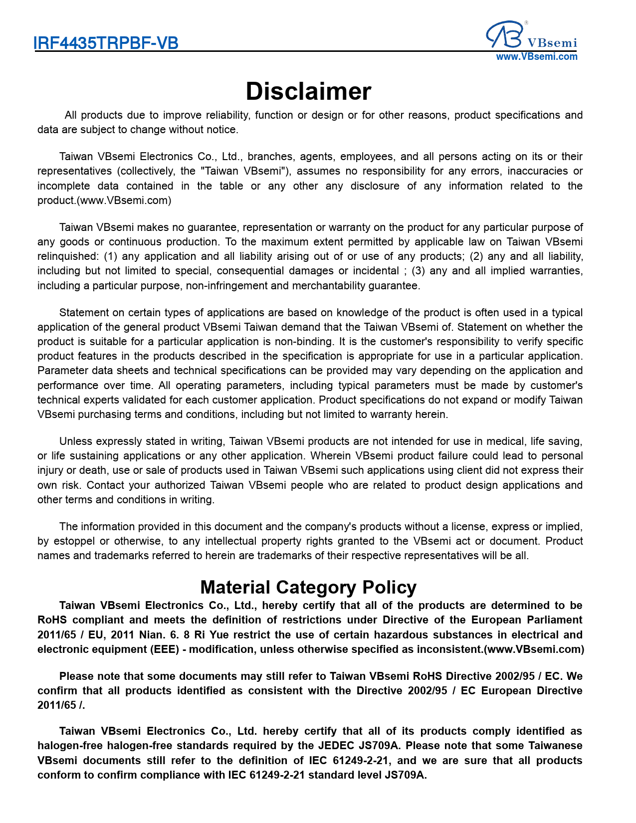 IRF4435TRPBF-VB. www.VBsemi.com Disclaimer