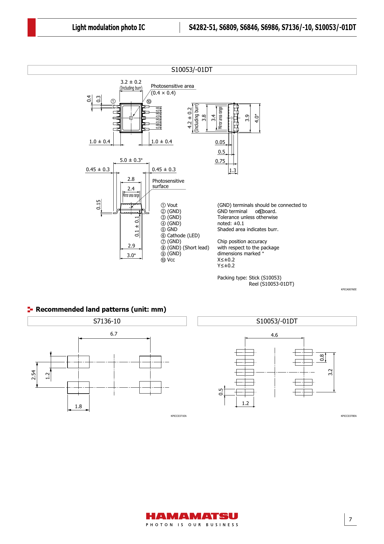 S7136-10 S10053/-01DT 6.7 KPICA0076EE 3.2