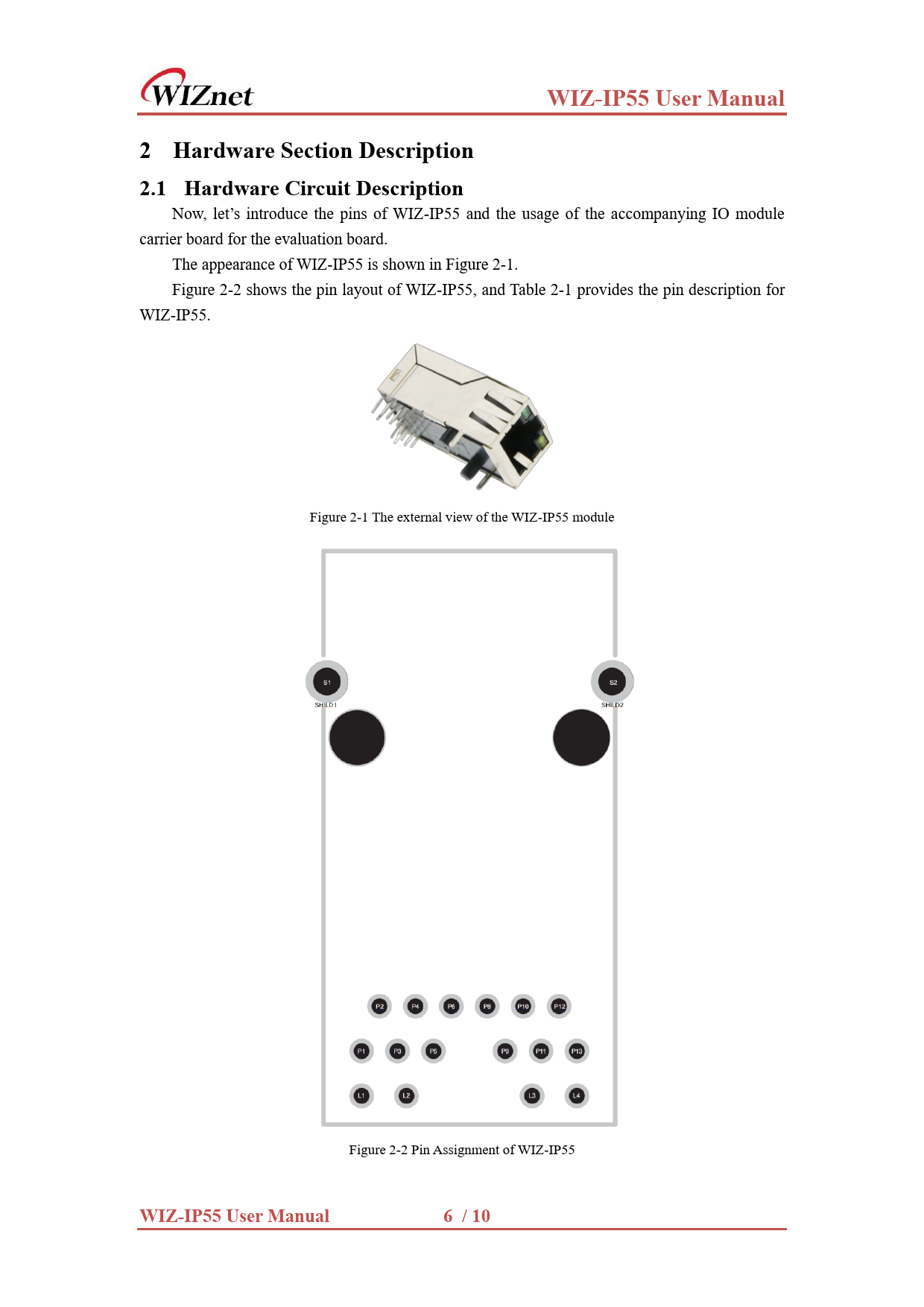 WIZ-IP55 User Manual 2 Hardware Section Description 2.1 Hardware Circuit Description 6 / 10