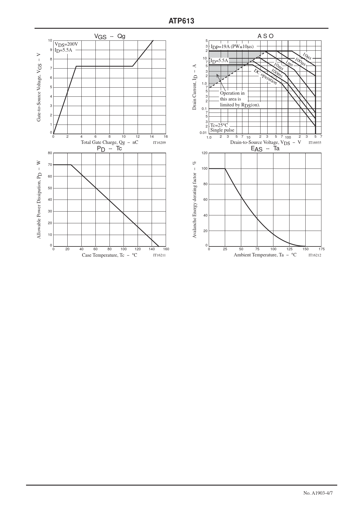 10 0 20 40 60 80 100 3 5 7 10 120 Case Temperature, Tc -°C 140 160 IT16211 2 3 5 7 100 2 3 Drain-to-Source Voltage, VDS -V 5 7 IT16935 EAS -Ta 120 60 0 2 IT16209 70 s 10