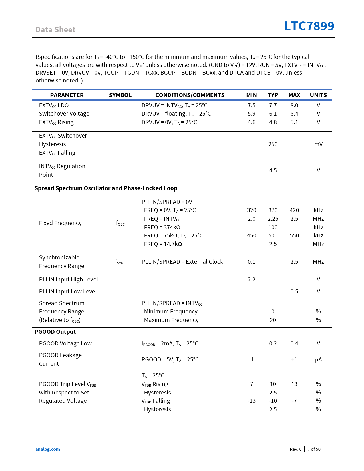 Páginas / Página50 / 7 — Data Sheet. LTC7899. PARAMETER. SYMBOL. CONDITIONS/COMMENTS. MIN. TYP. …