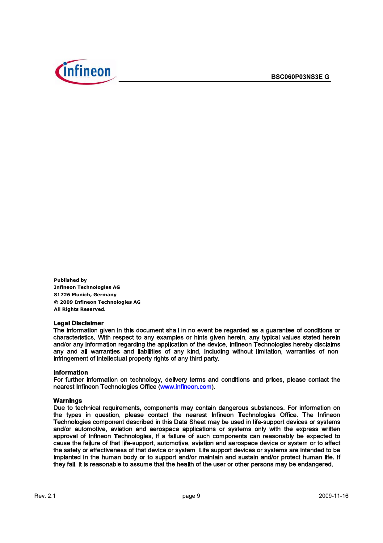 Datasheet BSC060P03NS3E G (Infineon) - 9