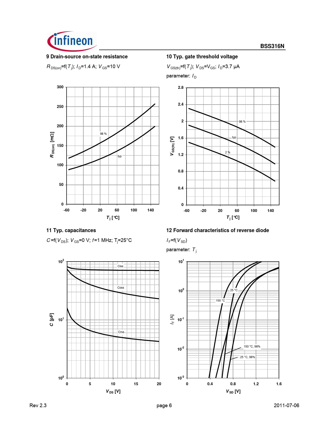 Páginas / Página9 / 6 — BSS316N. 9 Drain-source on-state resistance. 10 Typ. gate threshold …