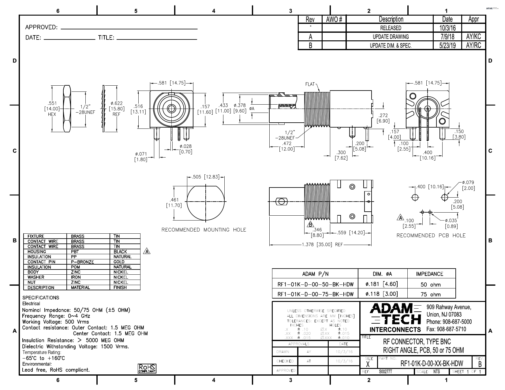 Bnc ra pcb 50 4g Hz zinc body ni