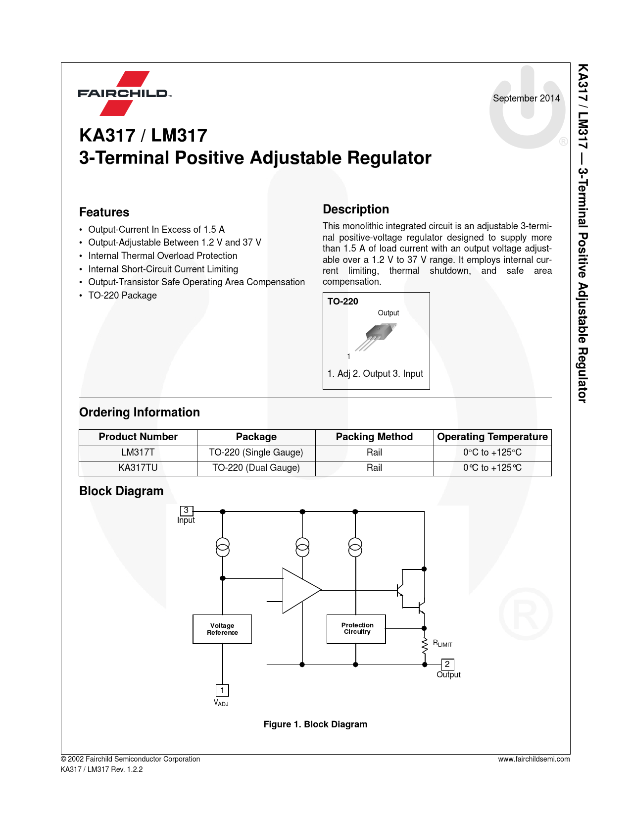 KA317 / LM317 Rev. 1.2.2 www.fairchildsemi.com KA317 / LM317 — 3-Terminal Positive Adjustable Regulator September 2014