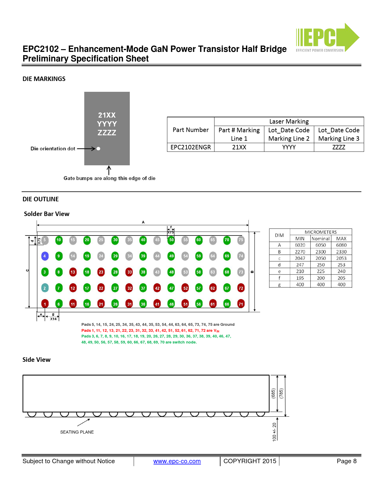 Subject to Change without Notice www.epc-co.com COPYRIGHT 2015 Page 8
