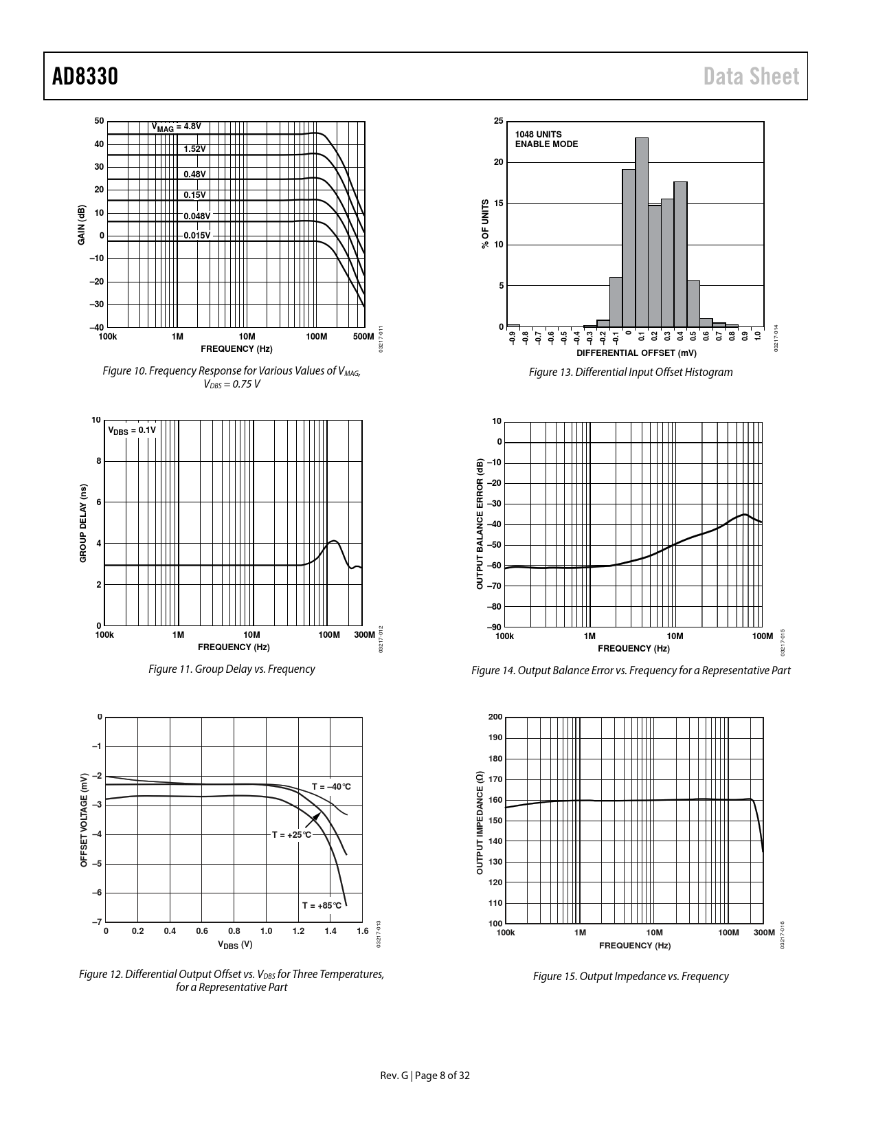 AD8330. Data Sheet. VMAG = 4.8V. 1048 UNITS. ENABLE MODE. 1.52V. 0.48V. 0.15V. ITS. 0.048V. N ( AI. 0.015V. OF U. % 10. –10. –20. –30. –40. 100k. 10M. 100M. 500M