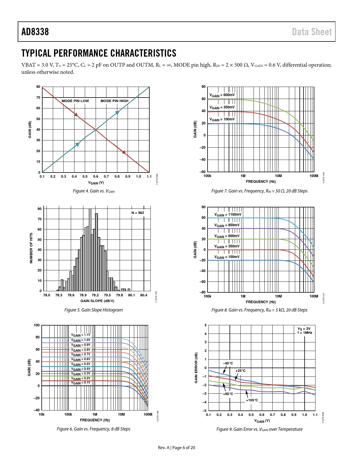 AD8338. Data Sheet. TYPICAL PERFORMANCE CHARACTERISTICS. GAIN = 600mV. MODE PIN LOW. MODE PIN HIGH. VGAIN = 350mV. VGAIN = 100mV. N (