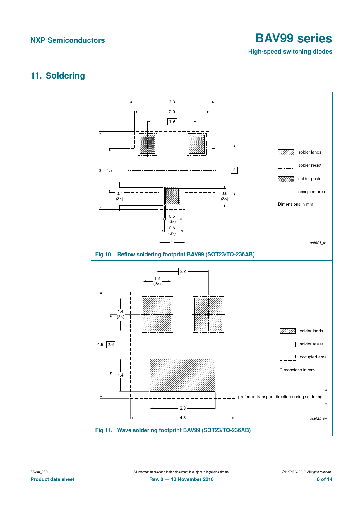 NXP Semiconductors. BAV99 series. High-speed switching diodes. 11. Soldering