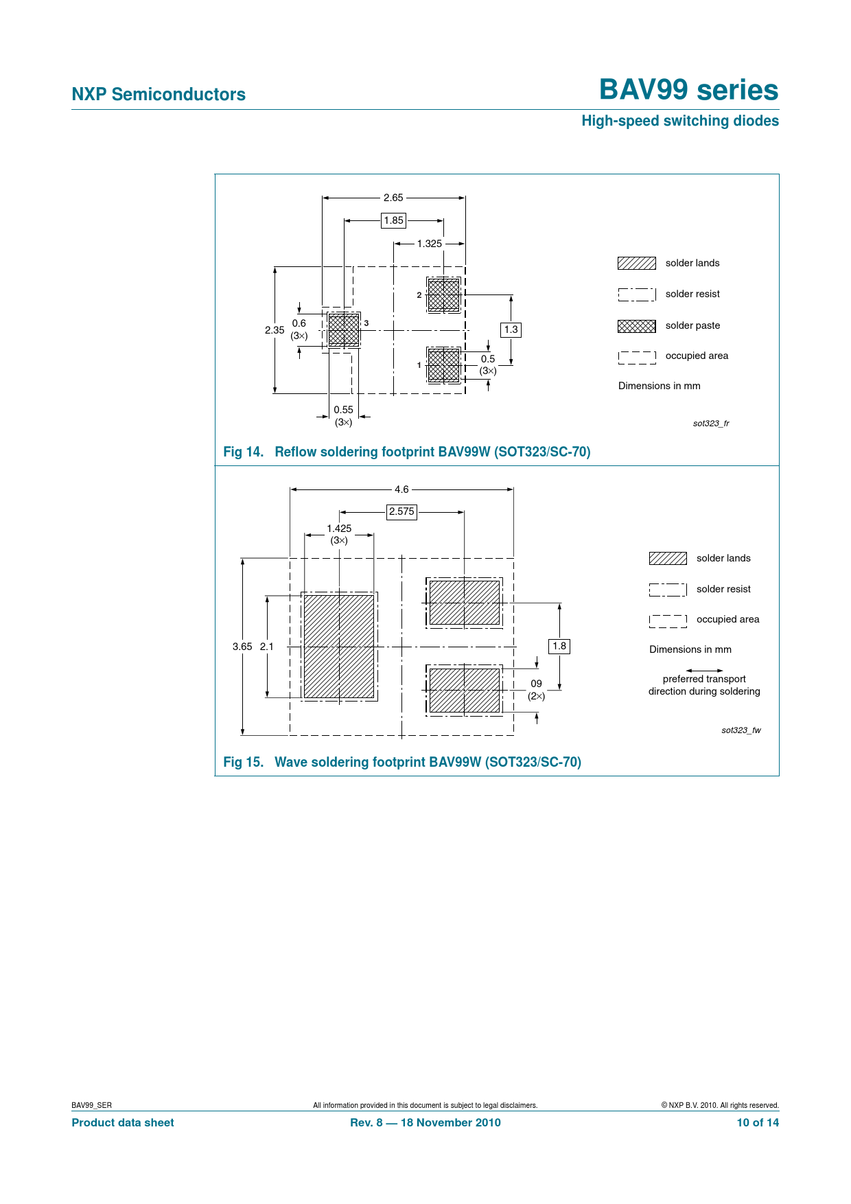 NXP Semiconductors. BAV99 series. High-speed switching diodes. Fig 14. Reflow soldering footprint BAV99W (SOT323/SC-70)