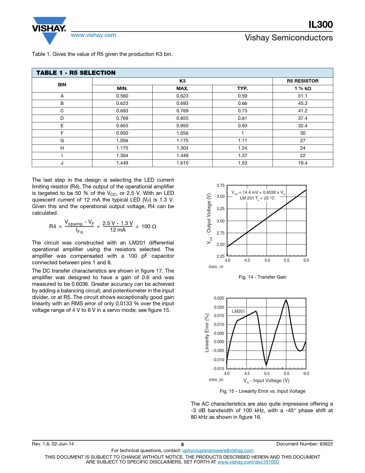 IL300 TABLE 1 - R5 SELECTION R5 RESISTOR BIN MIN MAX TYP 1 % k