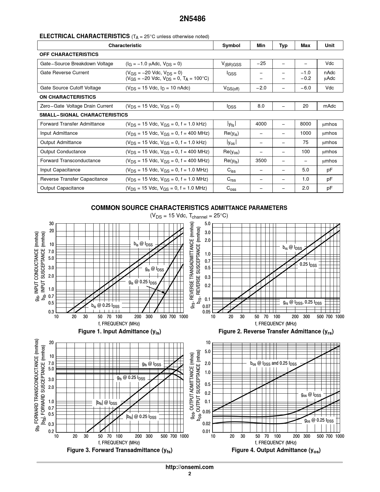 2N5486. ELECTRICAL CHARACTERISTICS. Characteristic. Symbol. Min. Typ. Max. Unit. OFF CHARACTERISTICS. ON CHARACTERISTICS