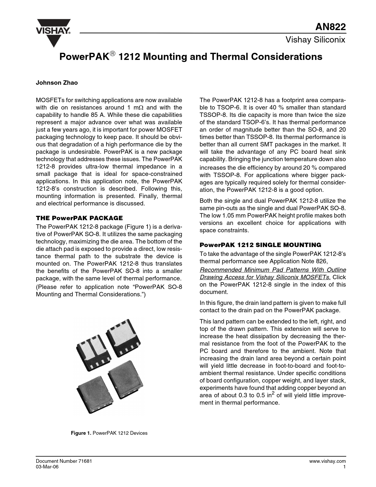 AN822. PowerPAK. 1212 Mounting and Thermal Considerations. Johnson Zhao. THE PowerPAK PACKAGE. PowerPAK 1212 SINGLE MOUNTING