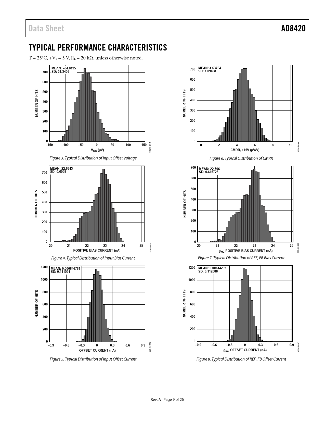 Data Sheet AD8420 TYPICAL PERFORMANCE CHARACTERISTICS MEAN: –34.8195 700 MEAN: 4.63764 700 SD: 31.3406 SD: 1.09498 600 500 400 R O