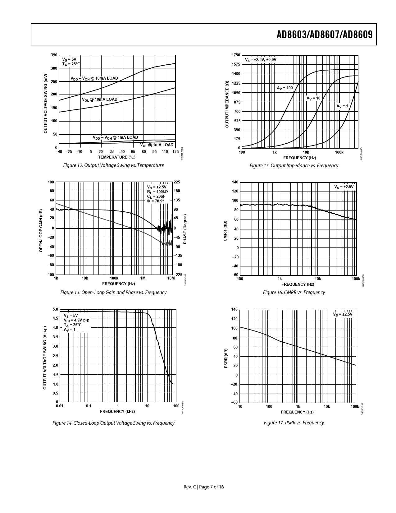 04 Figure 12. Output Voltage Swing vs. Temperature Figure 15. Output Impedance vs. Frequency
