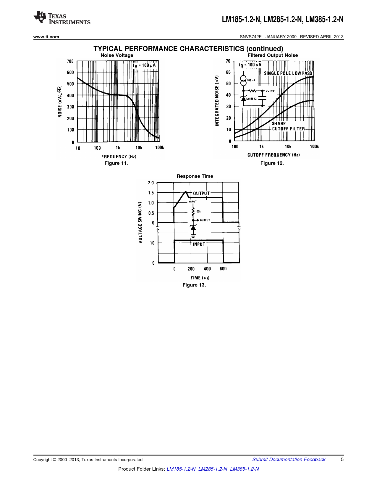 LM185-1.2-N. , LM285-1.2-N,. LM385-1.2-N. www.ti.com. TYPICAL PERFORMANCE CHARACTERISTICS (continued). Noise Voltage