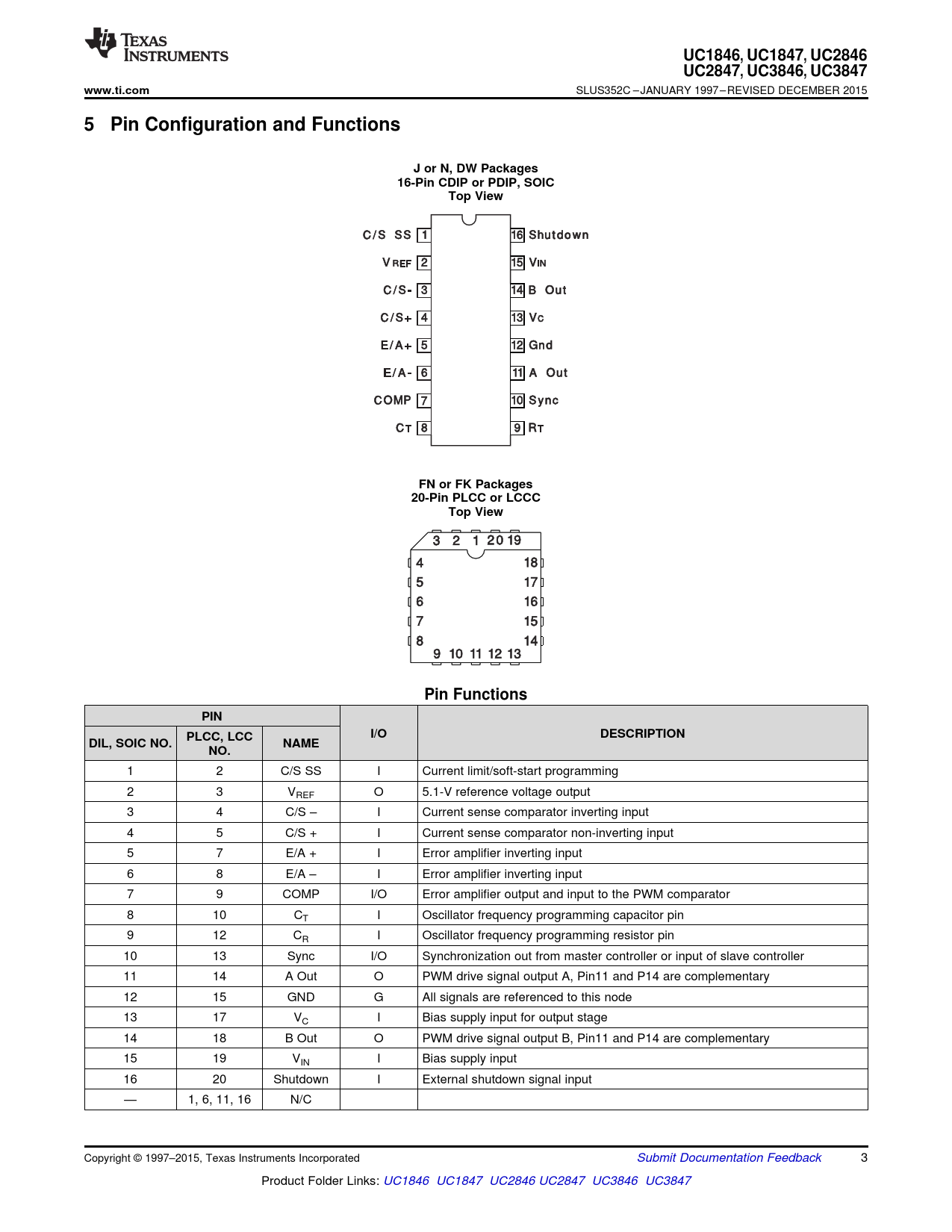UC1846,. UC1847. , UC2846. UC2847,. UC3846. , UC3847. www.ti.com. 5 Pin Configuration and Functions. J or N, DW Packages