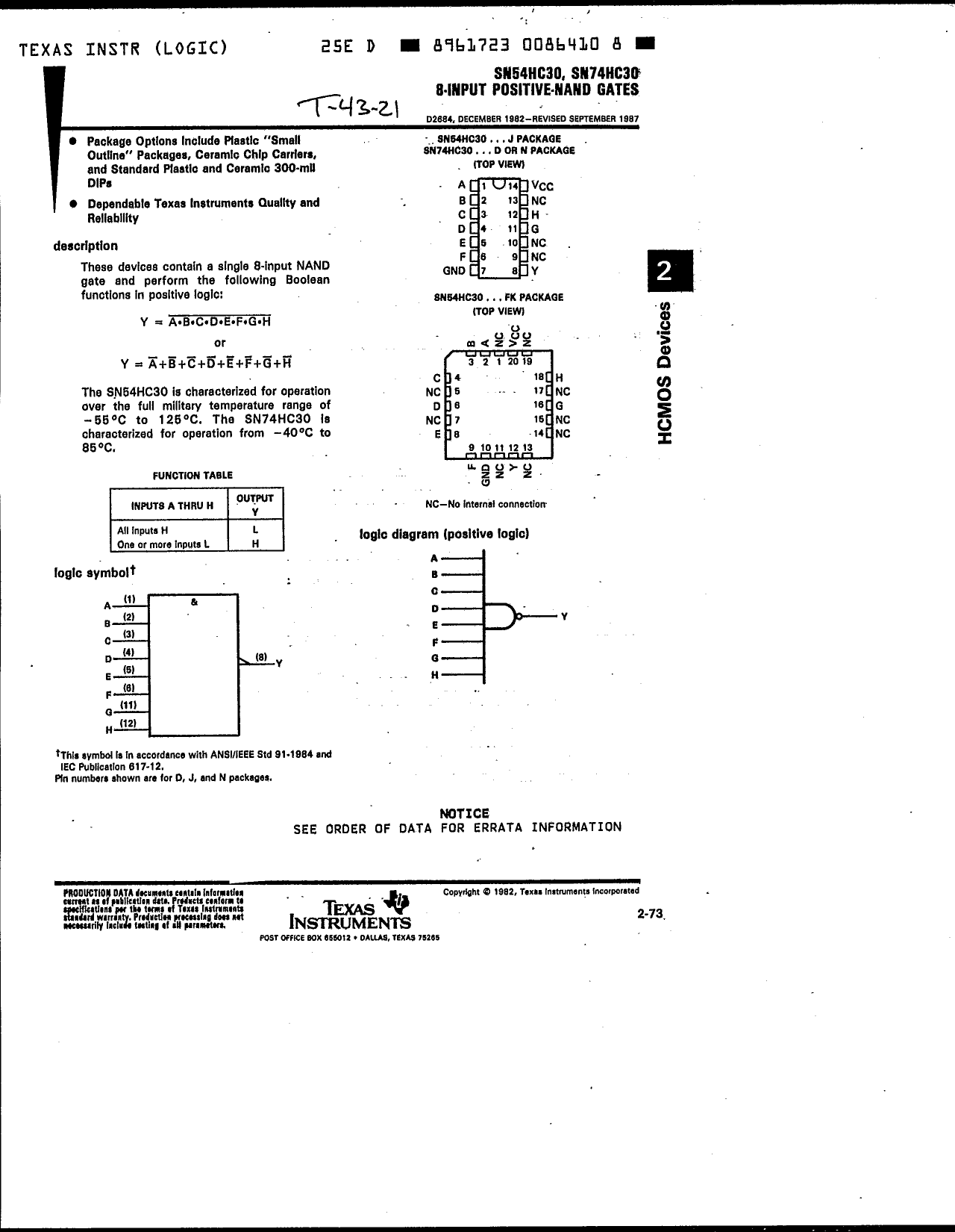 Document Outline RE_DScover_SN54_74HC30_14nov13 SN54_74HC30 (TIS)