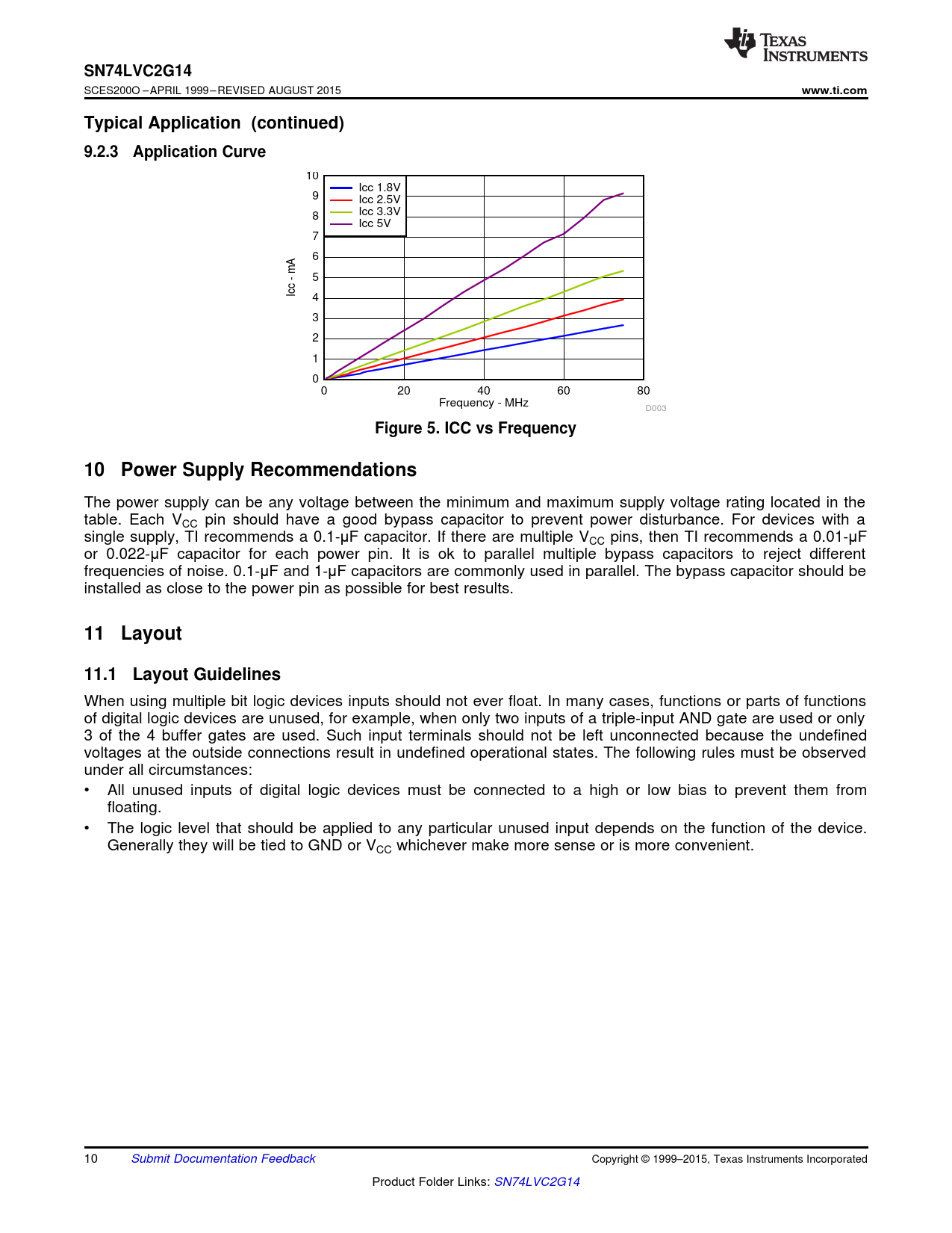 Figure 5. ICC vs Frequency 10 Power Supply Recommendations