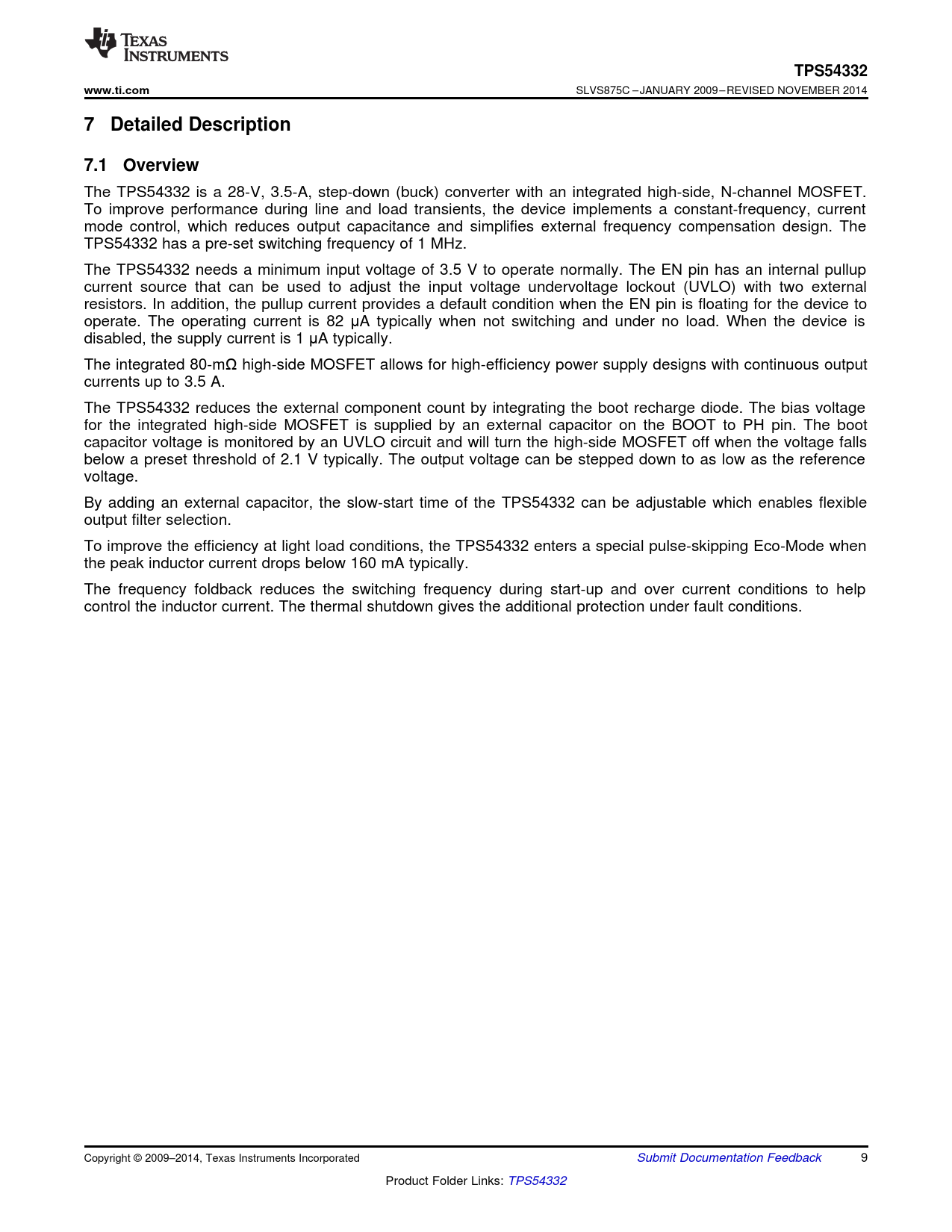 TPS54332. www.ti.com. 7 Detailed Description. 7.1 Overview