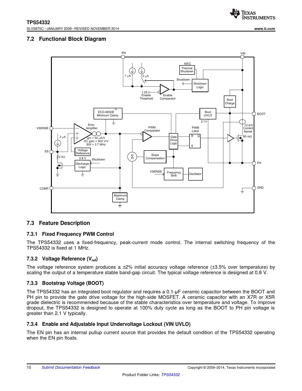 TPS54332. www.ti.com. 7.2 Functional Block Diagram. 7.3 Feature Description. 7.3.1 Fixed Frequency PWM Control