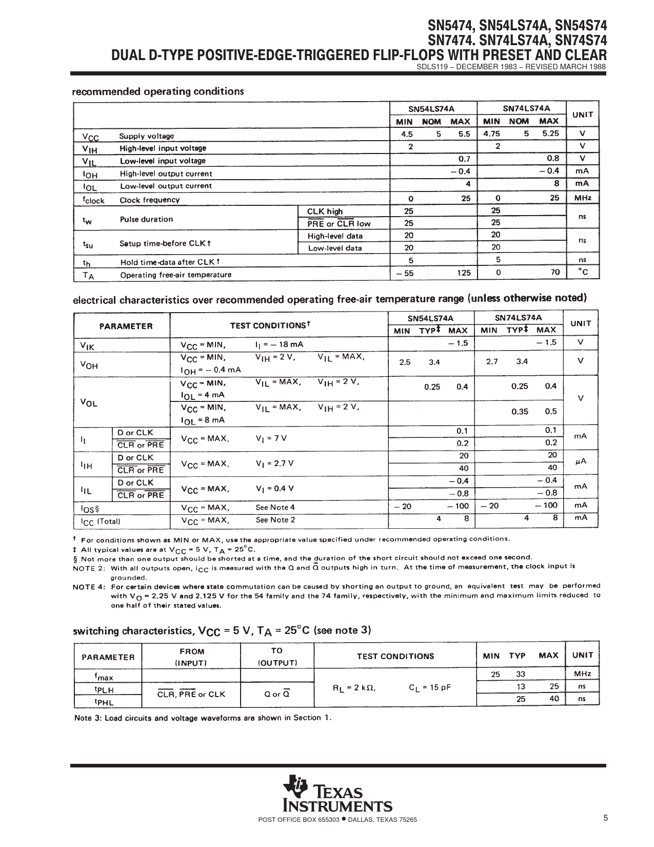 Datasheet SN5474, SN54LS74A, SN54S74, SN7474, SN74LS74A, SN74S74 (Texas Instruments) - 5