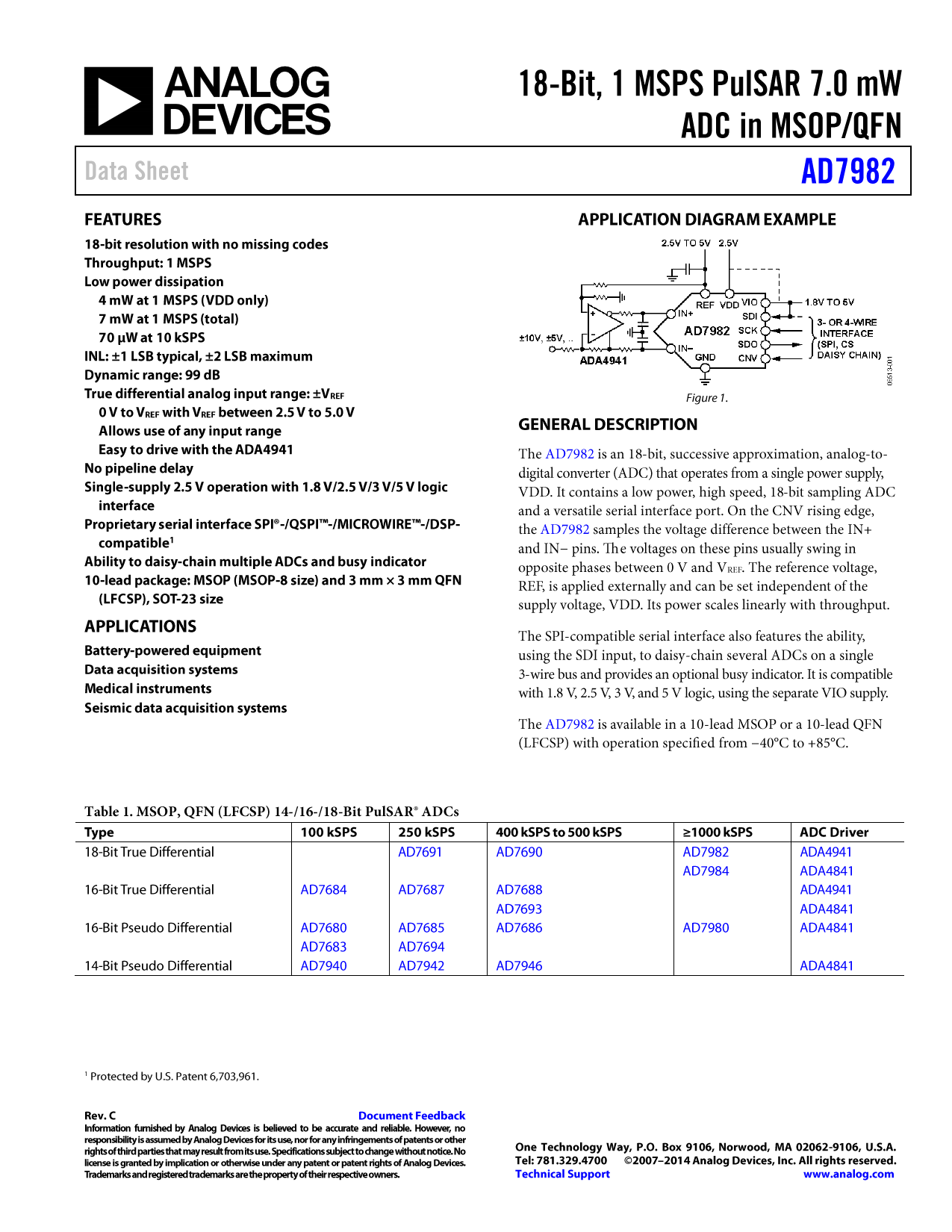 Datasheet AD7982 Analog Devices, Revisión: D