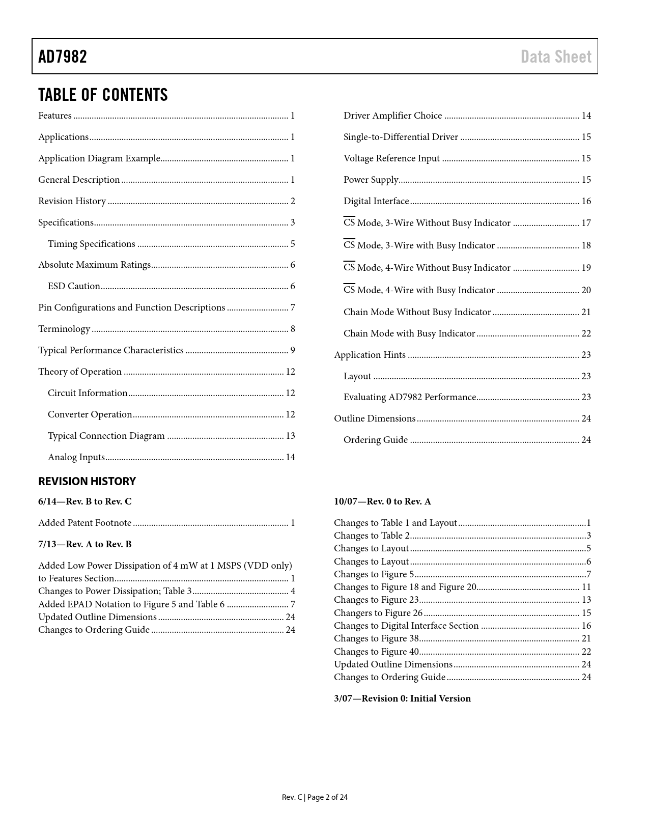 AD7982 Data Sheet TABLE OF CONTENTS REVISION HISTORY 6/14—Rev B to Rev C 10/07—Rev 0 to Rev A 7/13—Rev A to Rev B